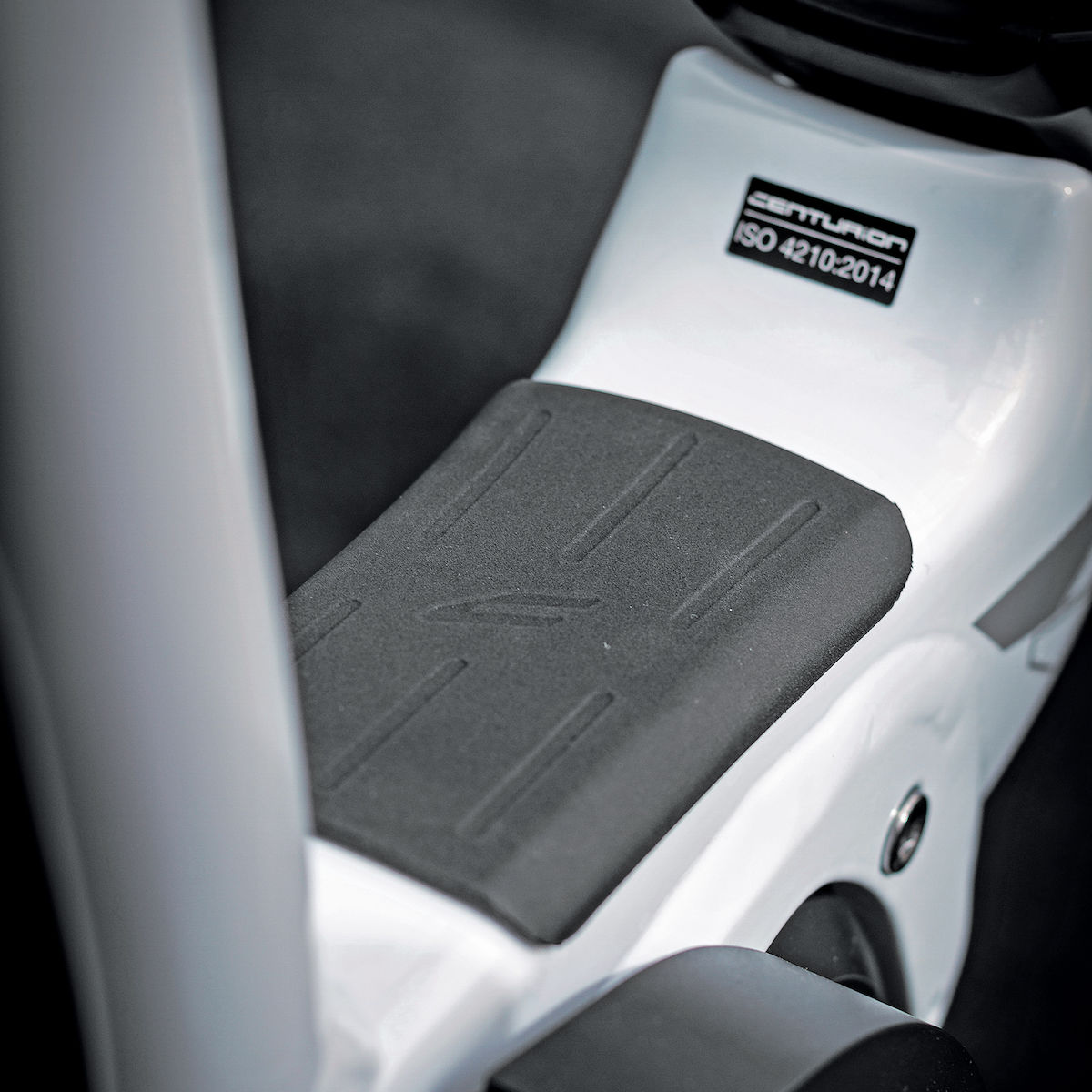 Der Durchstiegsschutz wird über dem Motor, zwischen dem Unterrohr und dem Sitzrohr, angebracht um Lackveränderungen bei Ein-und Aussteigen zu verhindern.