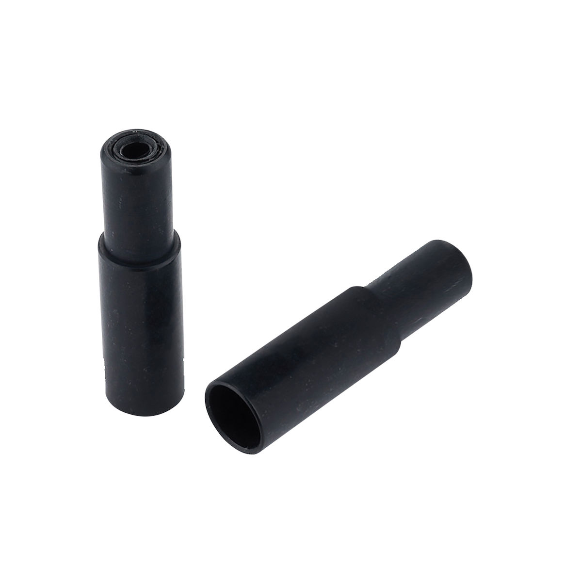 Endkappenadapter für kevlarverstärkte Bremszugaußenhüllen. Die Adapter werden an Zuganschlägen eingesetzt, wo Standard Bremszugaußenhüllen ohne Endkappe verwendet werden. Kevlarverstärte Außenhüllen sollten nie ohne Endkappen verwendet werden.