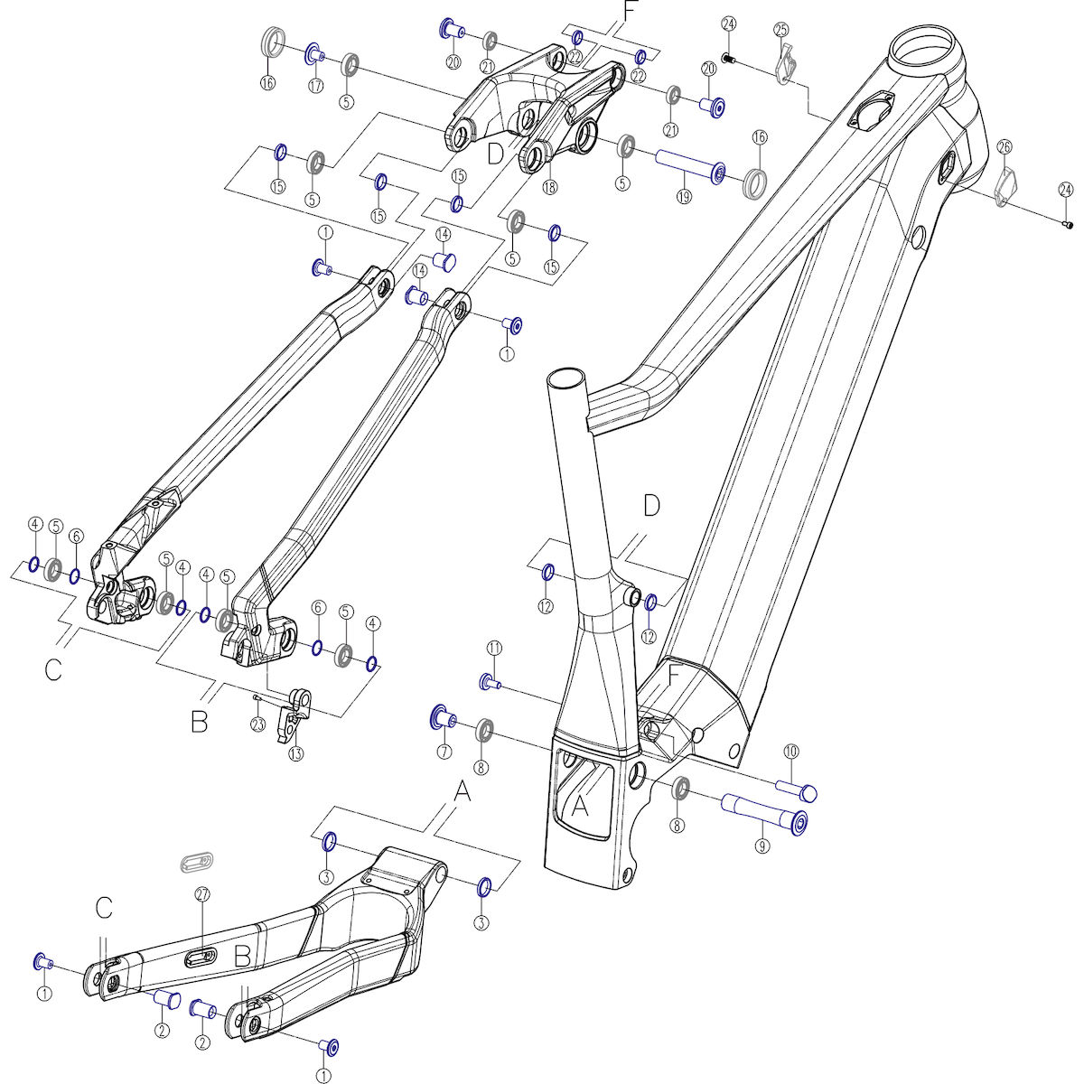 Enthält alle blau markierten Teile der Explosionszeichnung: