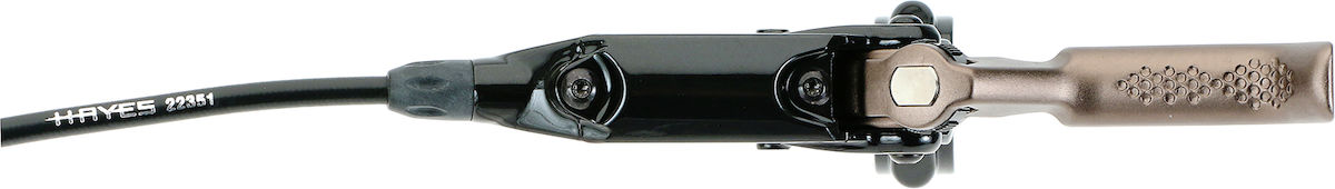 Die Bremszange wurde von der komplett neu entwickelten A4 adaptiert und garantiert hohe Bremspower. Es gibt eine Einstellung für den Hebelleerweg und die damit verbundene Position des Geberkolbens. Die Bremse verspricht intuitiv zu sein und beim Auftreffen der Beläge eine definierte Steigerung der Bremskraft aufzuweisen, was für hohe Berechenbarkeit und Kontrolle sorgt. Besonders stolz ist Hayes außerdem auf das neue Entlüftungssystem: Der Bremssattel ist mit zwei Bleeding-Öffnungen ausgestattet, die eine optimale Entlüftung des Systems gewährleisten sollen.