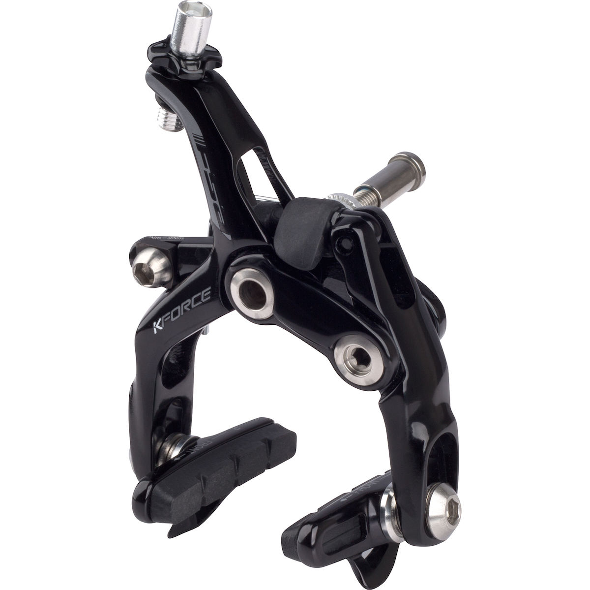 Das brandneue K-Force Bremsenset kombiniert Muskelkraft mit sehr feiner Dosierung. Optimiert für die aktuell breiten Felgen, haben wir bei unserer bisher fortschrittlichsten Dual-Pivot-Konstruktion jedes überflüssige Gramm abgefeilt. Die ausgeformten, flachen Aluminiumarme zeichnen sich durch ihre vierkantige Form aus. Ihre Steifigkeit ist das Geheimnis der beispiellosen Bremsleistung, Dosierung und Rückmeldung unserer K-Force – damit geht keine Bremskraft mehr verloren. Die schmale Form garantiert eine ausgezeichnete Aerodynamik, während die leichten Titanschrauben und Aluminium-Komponenten das Gewicht auf ein Minimum reduzieren. Aber natürlich bleibt die einfache Montage und Einstellung, für die die Serie bekannt ist, bestehen. Eine polierte schwarze Eloxierung und neue Grafiken sind ein klares Indiz für die kompromisslose Performance der K-Force.