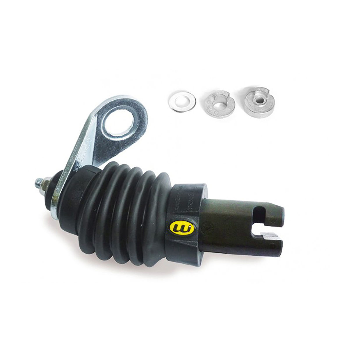 Ersatzteil für Weber-Kupplungsstück KU.02.000.00 inkl.Fangband m. Zurrschließe, Deichselfuß, Schraube M5 mit Beilagscheibe und selbstsichernde Mutter