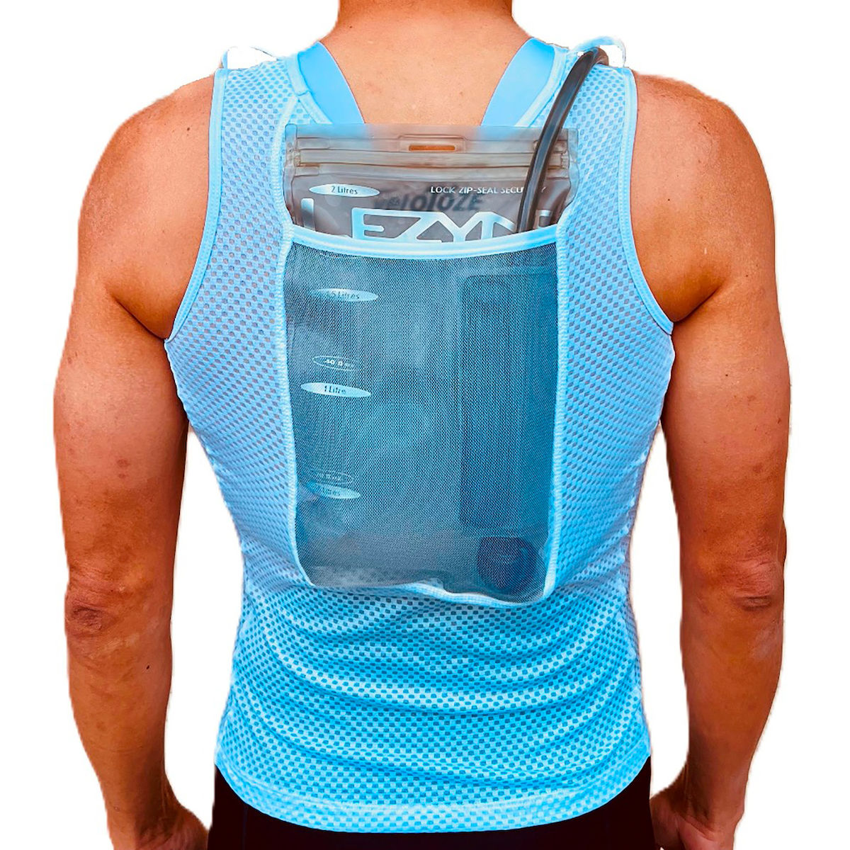 Entdecke die neueste Innovation von veloToze - die HydroVest - eine revolutionäre Lösung, die Trinksystem, Aerodynamik und Kühlung vereint. Dieses technisch durchdachte Baselayer verfügt über eine große Rückentasche für eine Trinkblase und wird unauffällig unter dem Trikot getragen. Im Vergleich zu einem herkömmlichen Trinkrucksack bietet die HydroVest einen klaren aerodynamischen Vorteil für alle, die schneller und effizienter unterwegs sein wollen.