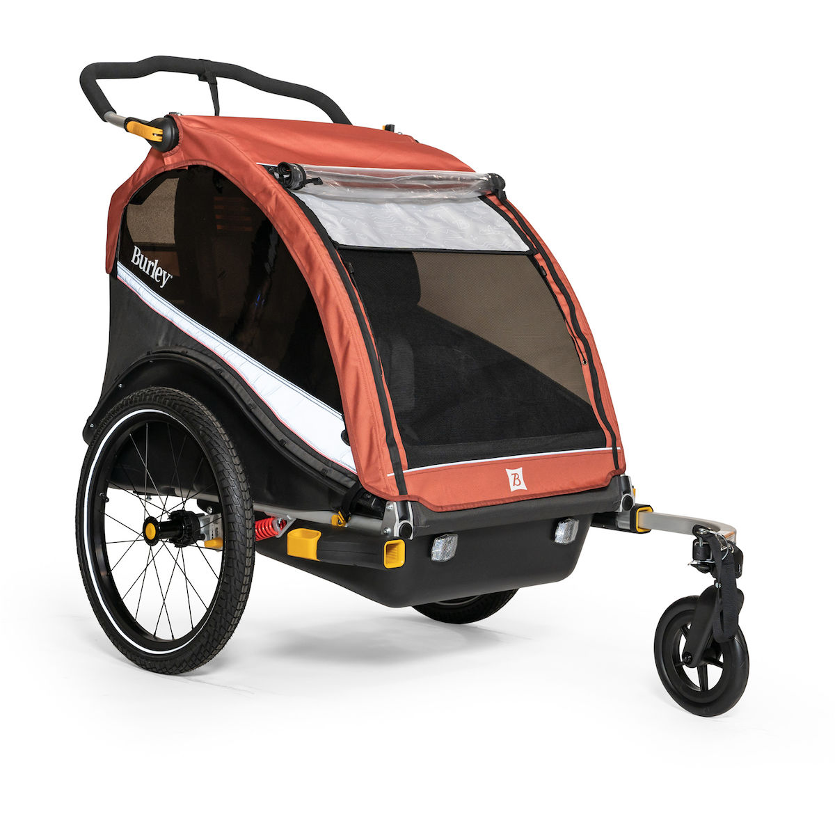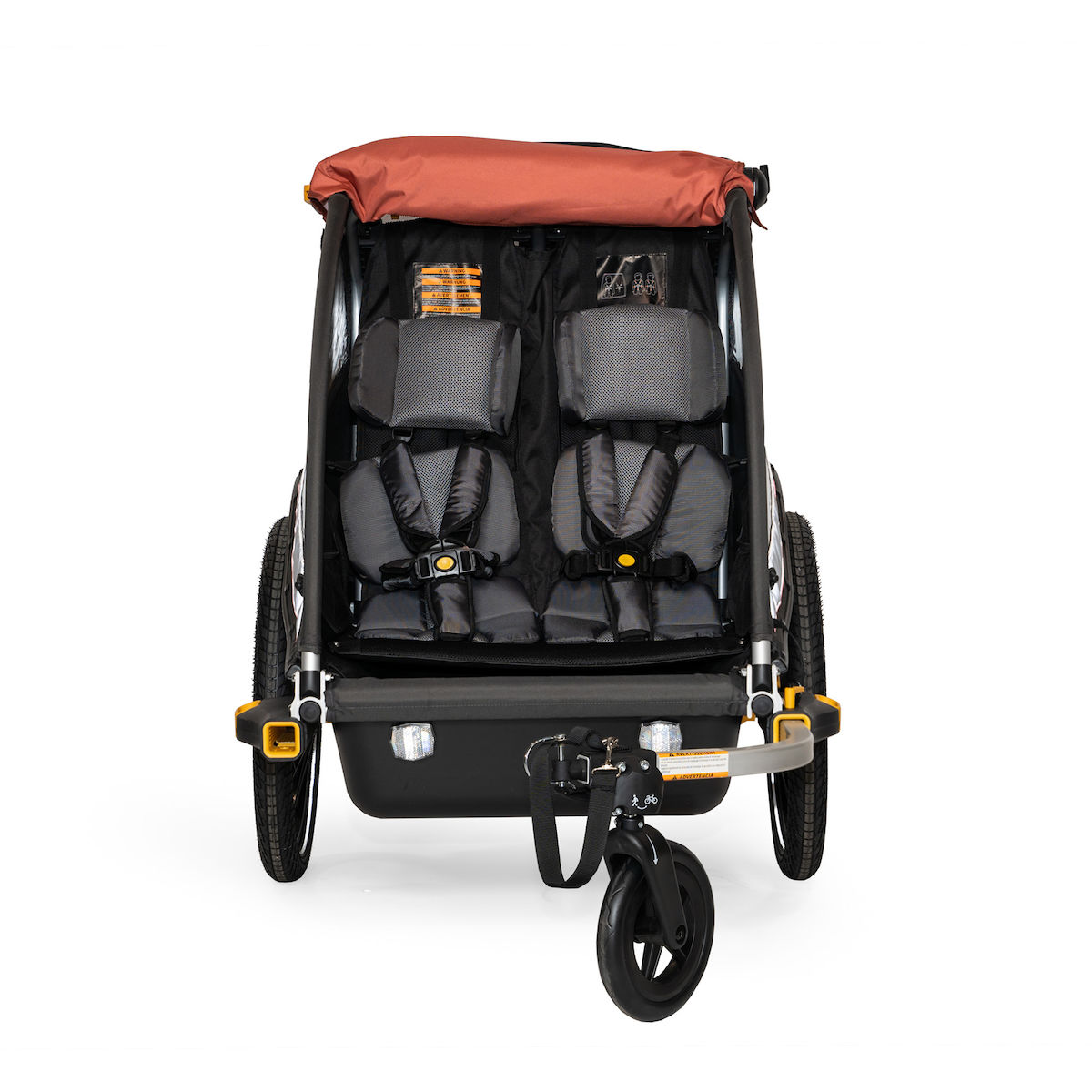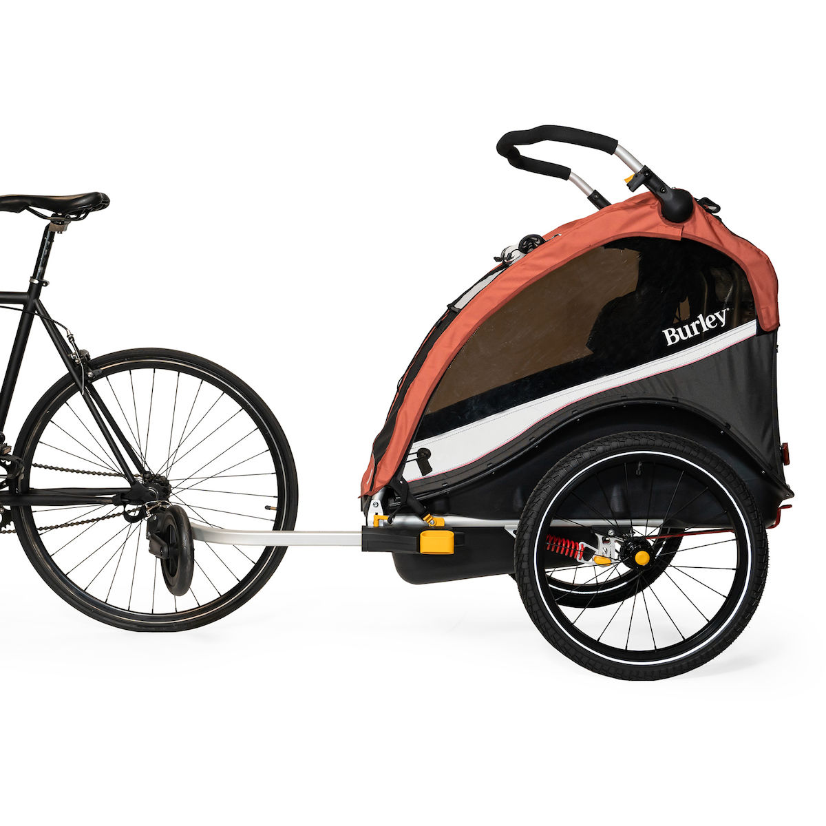 - Fahrrad-Option mit Deichsel und Kupplung zur Befestigung am Zugfahrrad