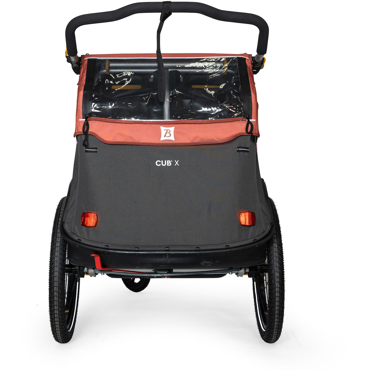Der neue, robuste Cub X ist immer für ein Abenteuer bereit und meistert auch schwieriges Gelände, während die Kleinen komfortabel und sicher untergebracht sind. Der strapazierfähige Kunststoffboden und das einstellbare Suspension-System sind die perfekt passenden Features, um mit den Kleinen im Schlepptau auch abseits ausgetretener Pfade unterwegs sein zu können. Getönte Seitenfenster und das wasserabweisende Cover sorgen dafür, dass der Spaß sowohl bei Sonnenschein als auch Regen nonstop weitergehen kann.