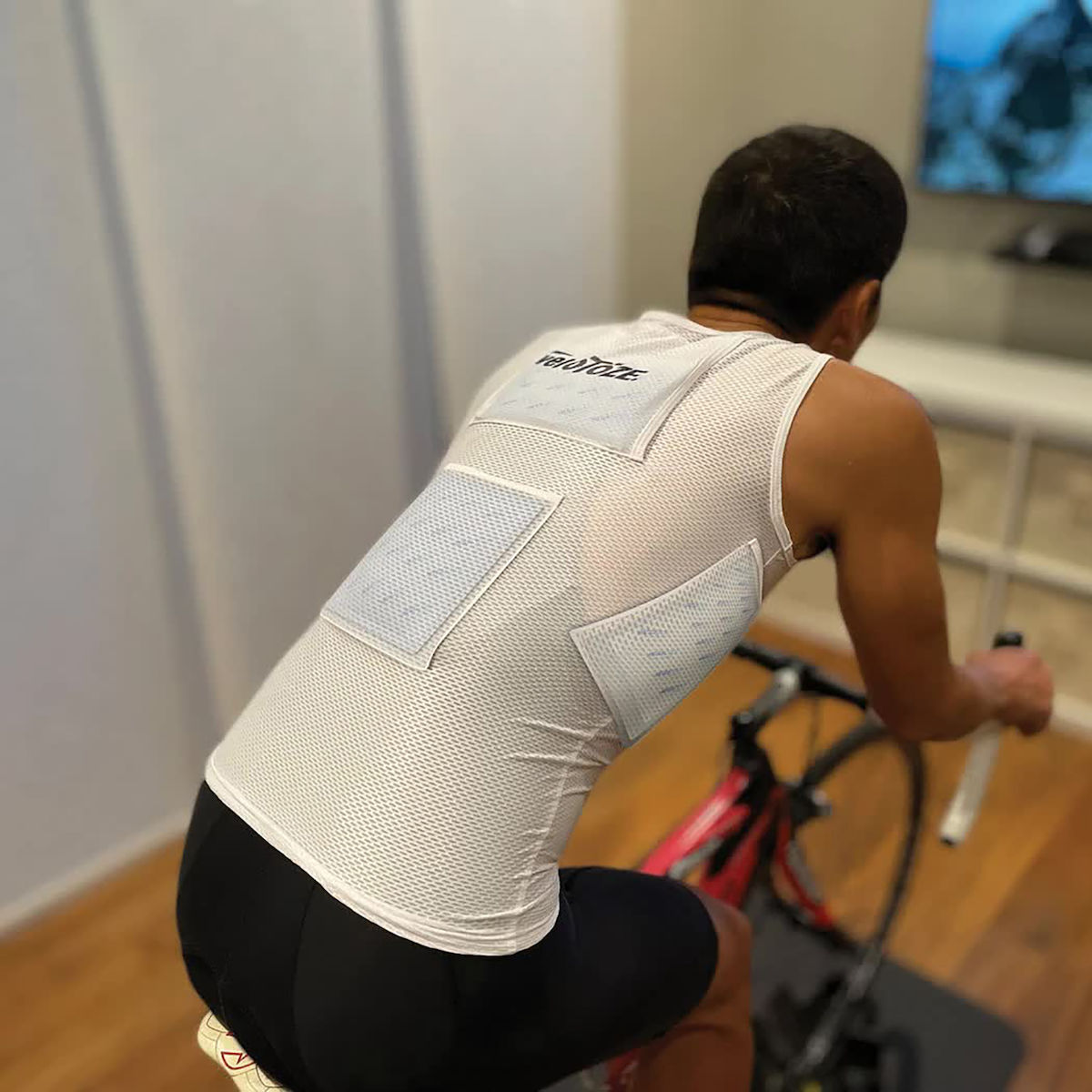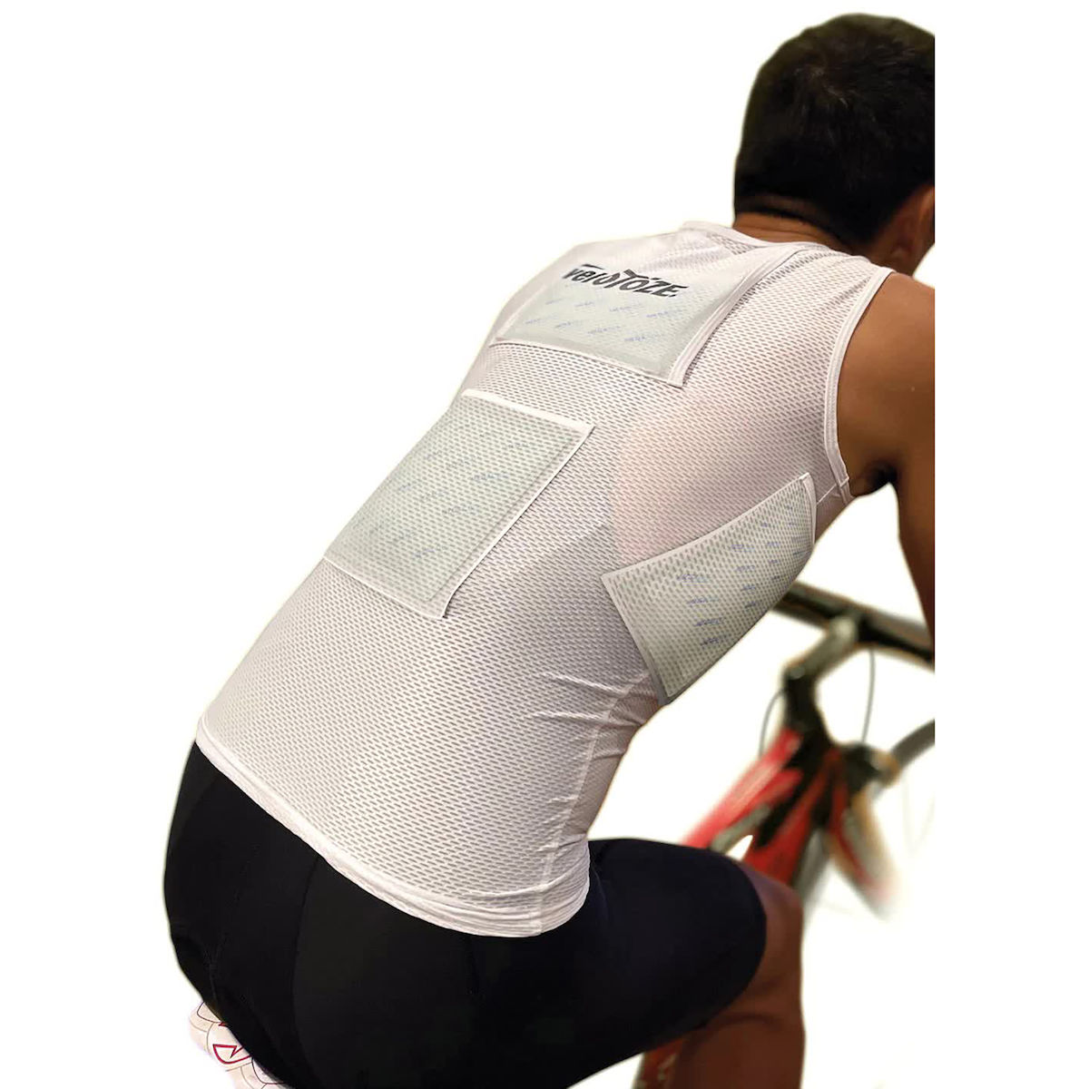 Die veloToze Kühlweste wurde entwickelt, um Radfahrer Indoor oder bei heißem Wetter im Freien länger kühl zu halten. Sie besteht aus einem atmungsaktiven und feuchtigkeitsregulierenden Material, welches eng und gleichzeitig bequem anliegt. Die Kühlweste hat 4 speziell platzierte Taschen, die die Cooling Packs für eine maximale Kühlwirkung optimal positioniert am Körper halten. Der durchgehende Frontreißverschluss kann während der Fahrt für bestmögliche Belüftung vollständig geöffnet werden. Die Cooling Packs können immer wiederverwendet werden. Egal wohin Sie fahren: veloToze hilft Ihnen, den Elementen zu trotzen!