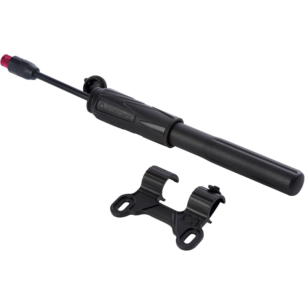 Minipumpe mit Rahmenbefestigung, ausziehbarem Schlauch und vielseitigem Pumpenkopf.