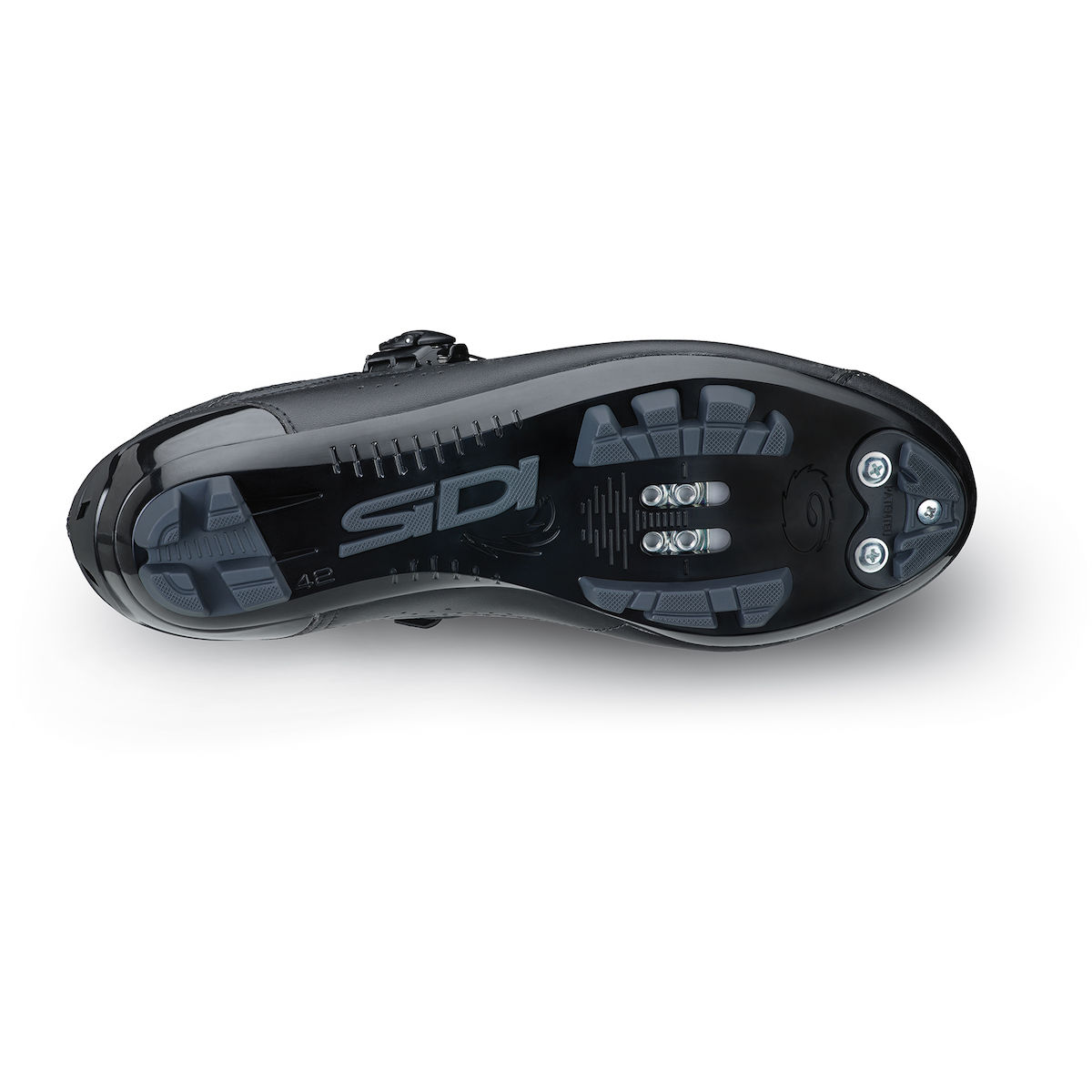 ![]() | Carbonfaserverstärkte Nylonsohle mit griffigen Kunststoffeinsätzen. Die Sohle wurde speziell für das Mountainbiken entwickelt und bietet äußerst guten Grip, hohe Stabilität und verhindert das Festsetzen von Schlamm. Das gummierte SIDI-Logo im mittleren Sohlenbereich sorgt für noch mehr Traktion. Die RS17 verbindet äußerst hohe Steifigkeit beim Pedalieren mit der nötigen Flexibilität in Laufpassagen. Austauschbarer Profileinsatz im Fußspitzenbereich und Einsätze für optionale Stollen. |