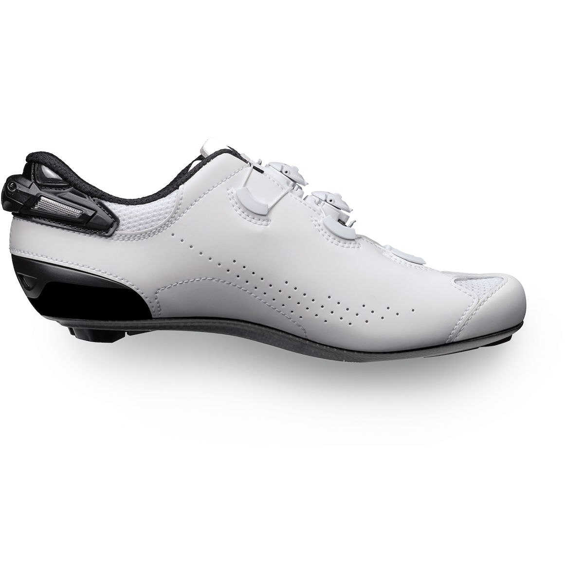 Neue, hochwertige Carbonsohle mit Sole Replacement System (SRS) und spezieller Passform im Mittelfußbereich für maximale und direkte Kraftübertragung. Der „BOOST“ für zusätzliche Power und Unterstützung bei jedem Tritt. SRS-Einsätze aus Nylon und TPU (Thermoplastisches Polyurethan) schützen das Carbon in den Bereichen, wo es durch den Gebrauch am stärksten beschädigt werden kann, und erhöhen die Abriebfestigkeit beim Gehen. Mit Belüftungslöchern verbessern die SRS-Einsätze eine Luftzirkulation im Schuh. Ovale Löcher in der Sohle erweitern den Verstellbereich der Schuhplatte (zusätzliche Verstellmöglichkeit: ± 5 mm). Mit Ausrichtungsskala für optimale Positionierung der Pedalplatten. Kompatibel mit allen gängigen Rennrad-Pedalsystemen. |