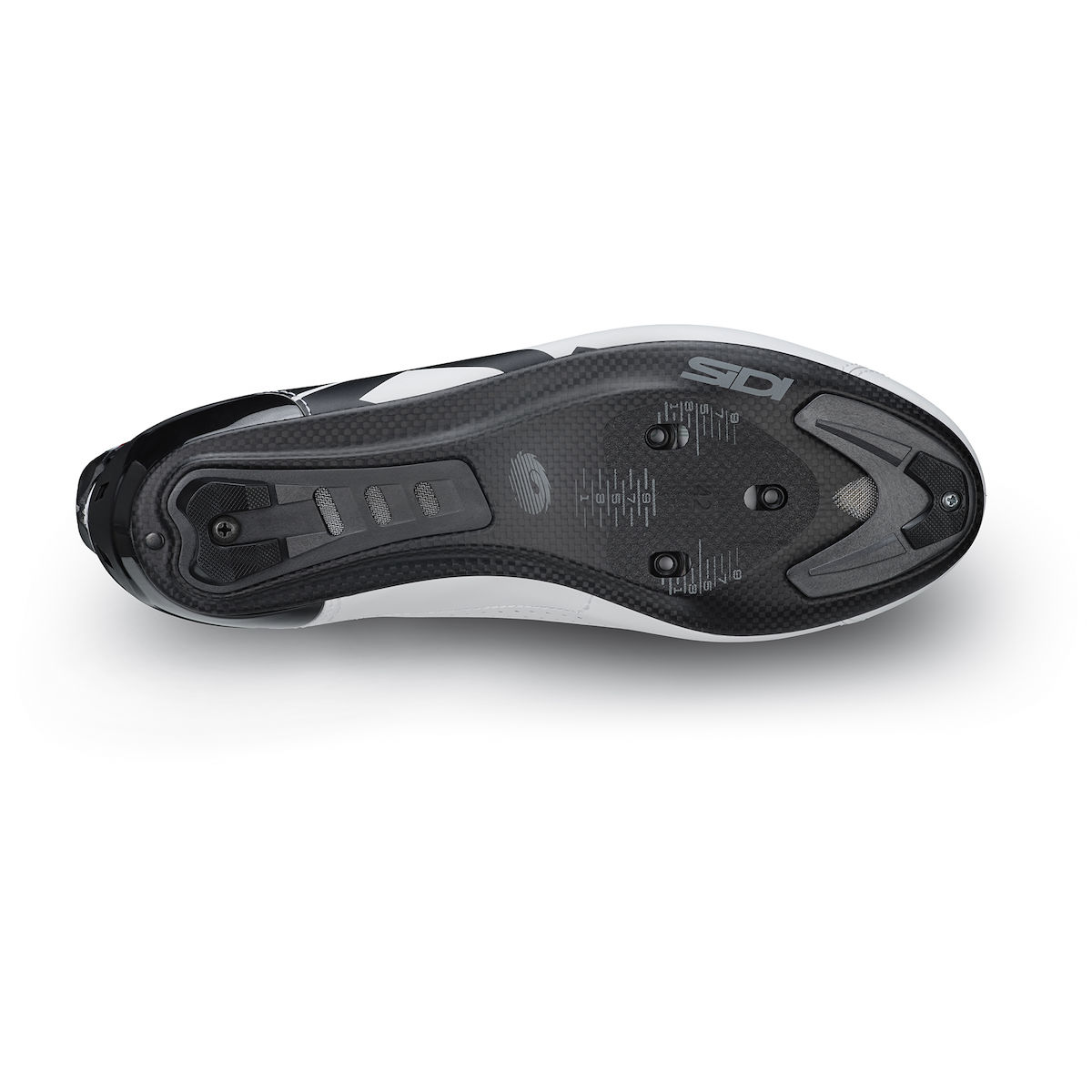 Neue, hochwertige Carbonsohle mit Sole Replacement System (SRS) und spezieller Passform im Mittelfußbereich für maximale und direkte Kraftübertragung. Der „BOOST“ für zusätzliche Power und Unterstützung bei jedem Tritt. SRS-Einsätze aus Nylon und TPU (Thermoplastisches Polyurethan) schützen das Carbon in den Bereichen, wo es durch den Gebrauch am stärksten beschädigt werden kann, und erhöhen die Abriebfestigkeit beim Gehen. Mit Belüftungslöchern verbessern die SRS-Einsätze eine Luftzirkulation im Schuh. Ovale Löcher in der Sohle erweitern den Verstellbereich der Schuhplatte (zusätzliche Verstellmöglichkeit: ± 5 mm). Mit Ausrichtungsskala für optimale Positionierung der Pedalplatten. Kompatibel mit allen gängigen Rennrad-Pedalsystemen. |