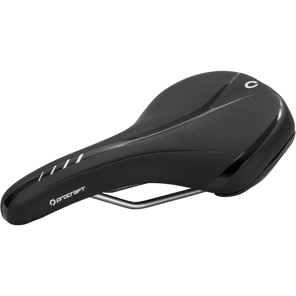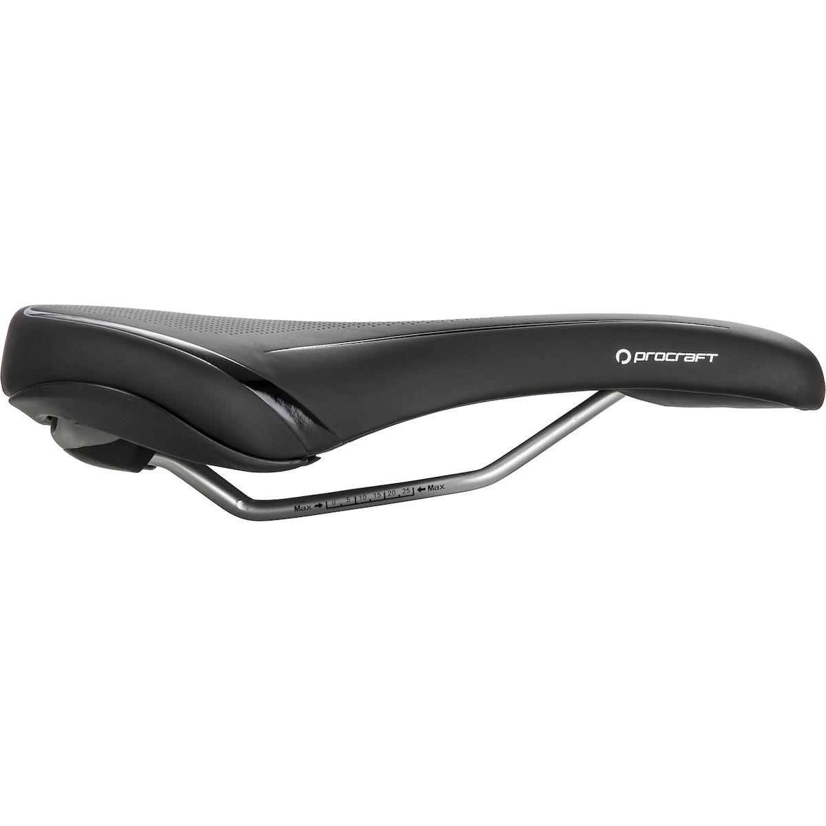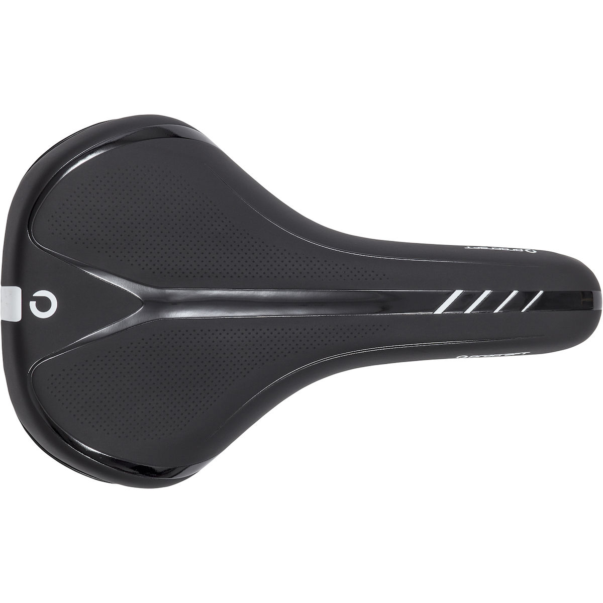Komfortabler Tourensattel mit breiter Sitzfläche und optimaler Festigkeit der Polsterung. Zusätzlich zur Vertiefungen in der Mitte sorgt hier ein ausgeklügelter Materialmix der Schale für variierende Flexibilität. So werden bei zunehmend aufrechter Sitzoposition der Druck sowohl im Dammbereich als auch an den Sitzknochen verringert. Die Aufnahme der Sattelstreben an der Schale ist zusätzlich vibrationsdämpfend.