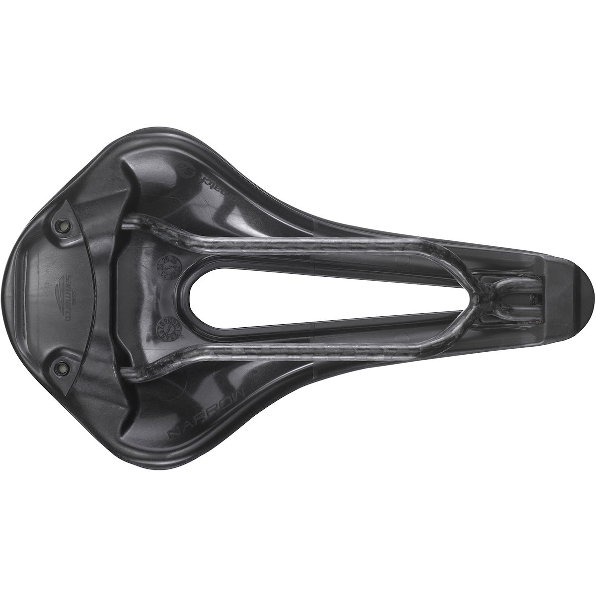 Superleichte/-steife Vollcarbon-Streben mit ovalem Querschnitt (9,8 mm x 7 mm) und patentierter DNA (Dynamic Node Action) Technologie, die ein Verdrehen verhindert und die Vorderseite des Sattels schmal hält, um eine große Beinfreiheit beim Pedalieren zu gewährleisten. Es muss geprüft werden ob die Sattelstütze für ovale Streben zugelassen ist (bei einigen Sattelstützen kann ein Adapter erforderlich sein).