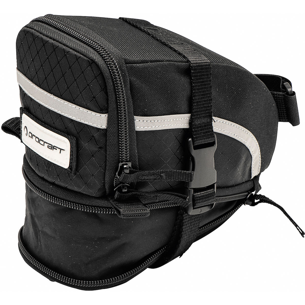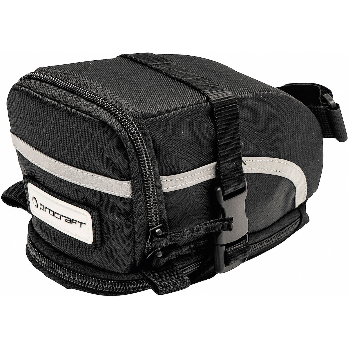 Zur Befestigung am Sattel: Alle PROCRAFT Werkzeugtaschen haben folgende Ausstattung: Reflektierende Reißverschlüsse und reflektierendes PROCRAFT Logo.