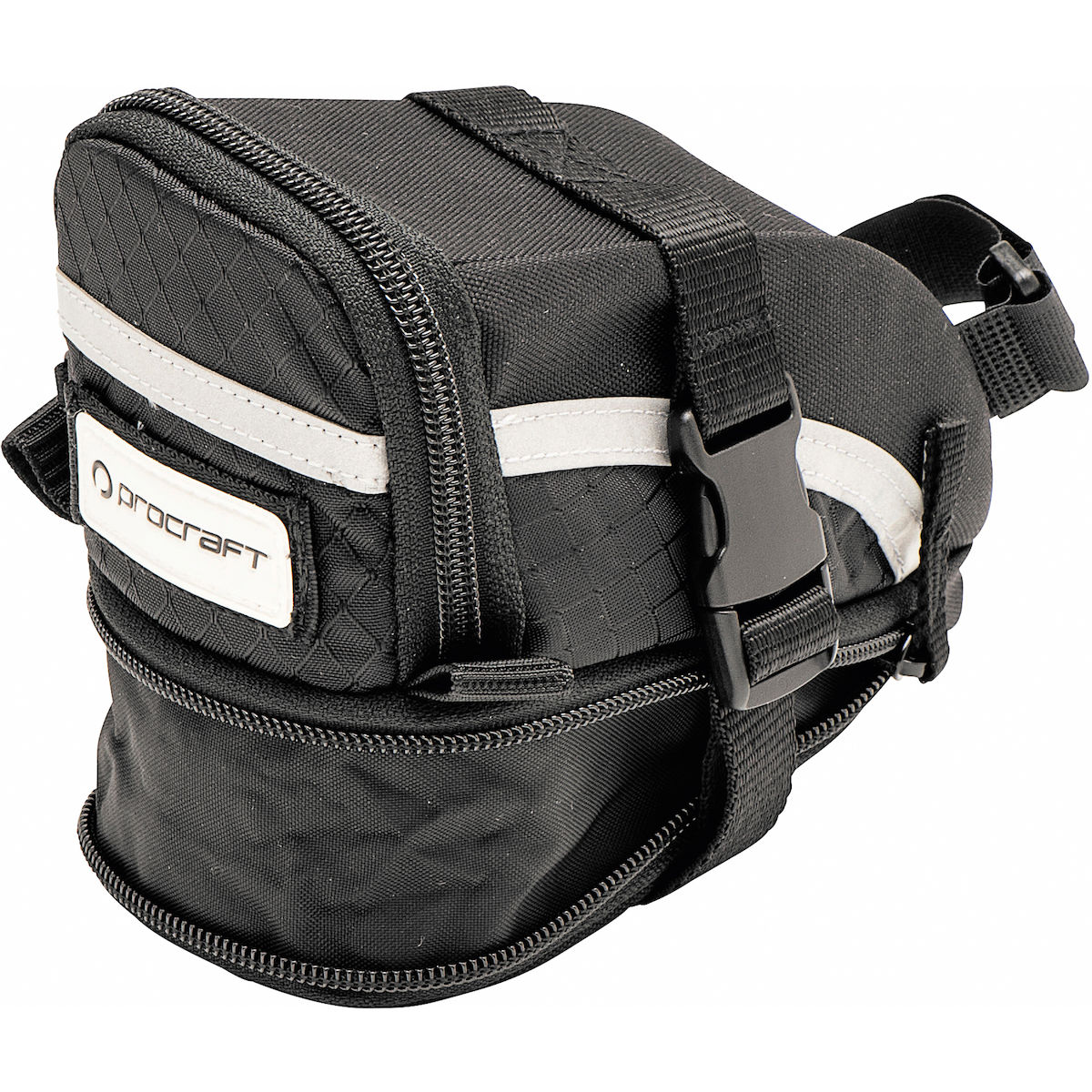 Zur Befestigung am Sattel: Alle PROCRAFT Werkzeugtaschen haben folgende Ausstattung: Reflektierende Reißverschlüsse und reflektierendes PROCRAFT Logo.