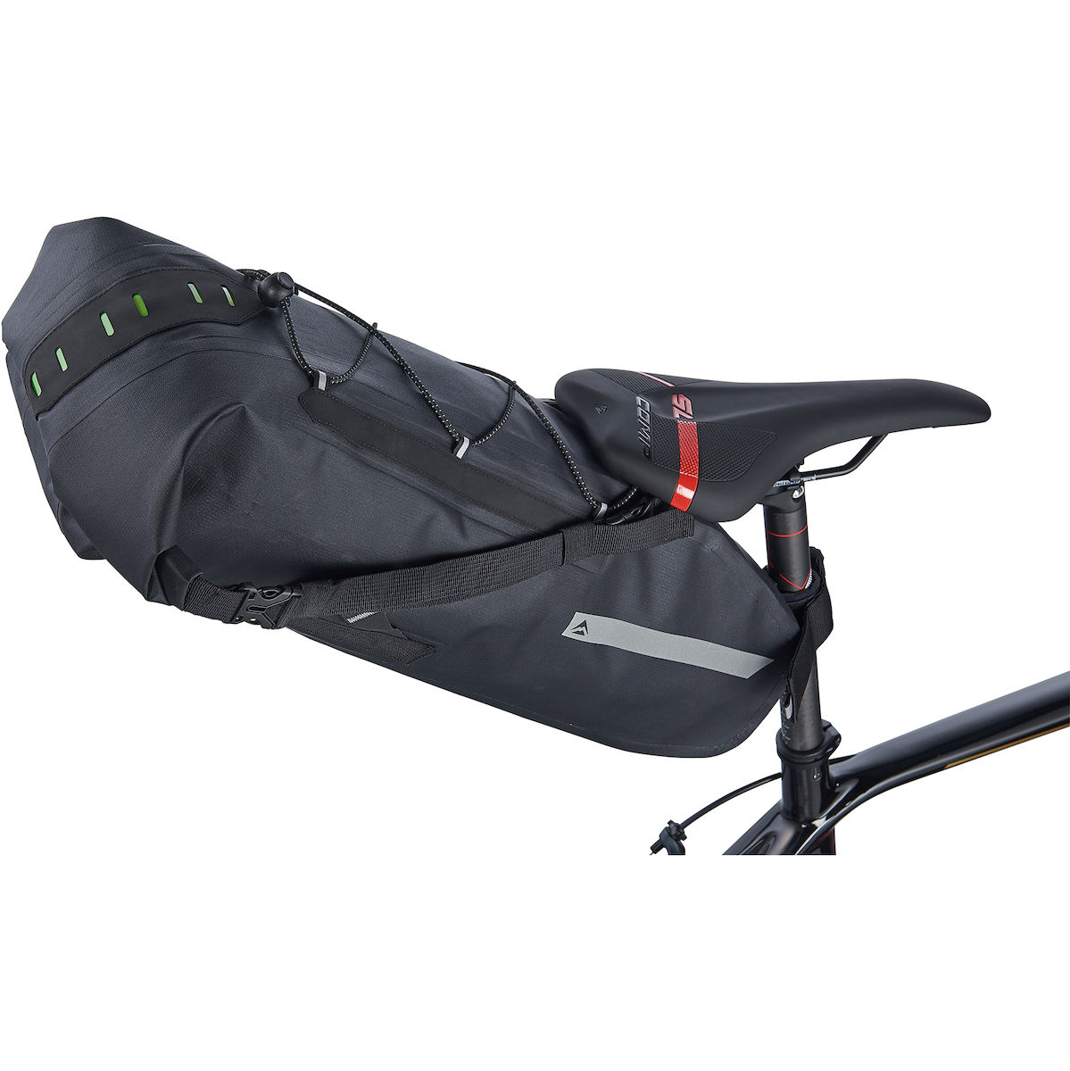 Satteltasche zur Befestigung am Sattelgestell und der Sattelstütze.