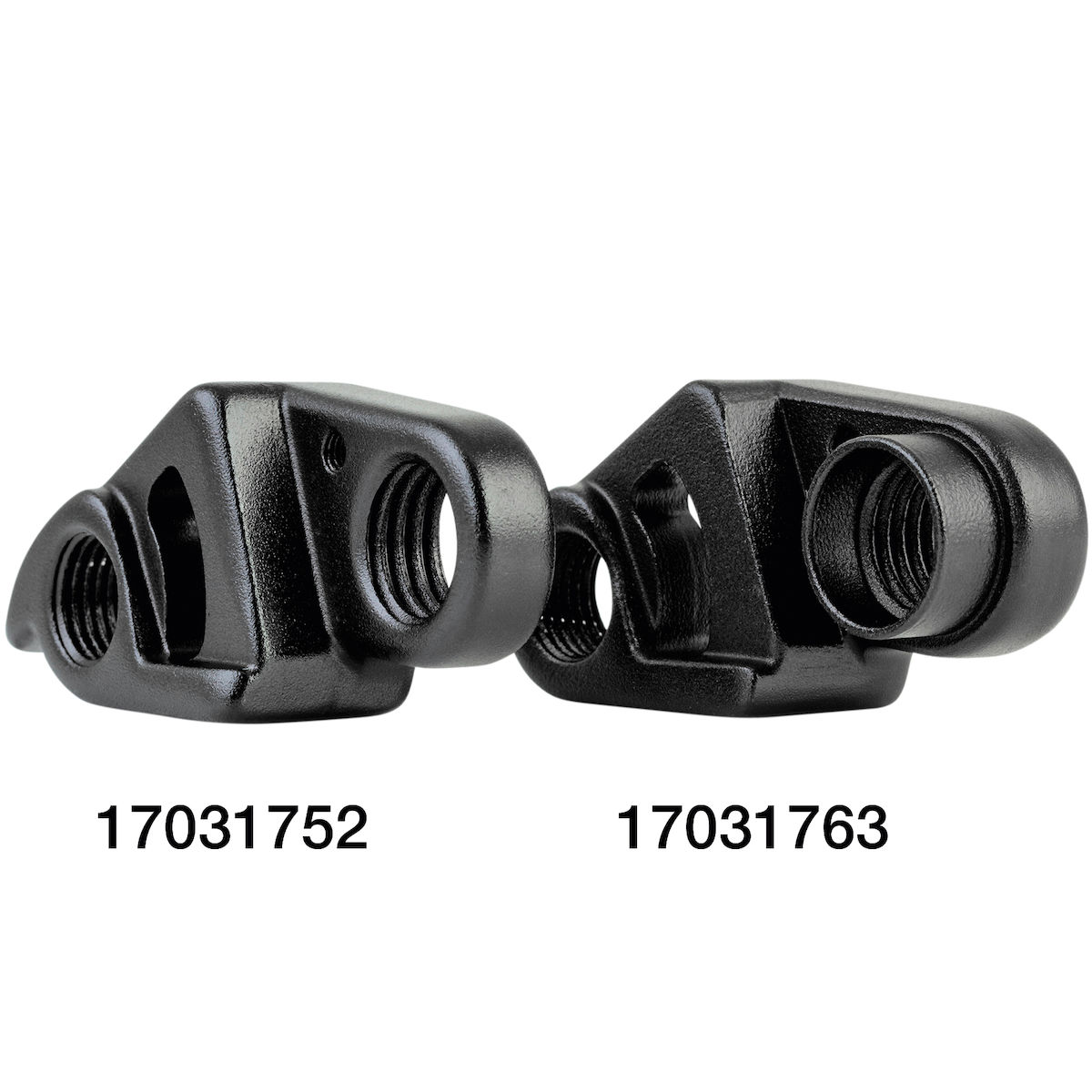 Die Schaltaugen 17031752 (DH-049) und 17031753 (DH-050) sind nur für Rahmen geeignet, die eine 12 mm Durchgangsbohrung im rechten Ausfallende aufweisen.