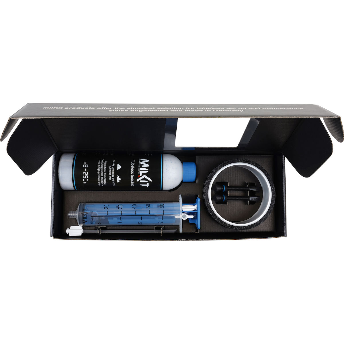 milKit macht die Tubeless-Umrüstung sauber und einfach! Alle benötigten Produkte und Lösungen zum Umrüsten von Mountainbike-, Gravel- oder Rennrad-Reifen sind im milKit-Programm erhältlich.